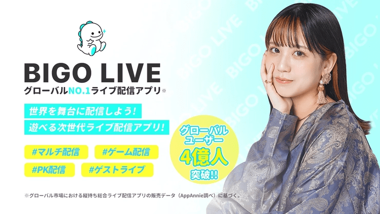 全世界で4億をも超えるユーザーがBIGOLIVE(ビゴライブ)のライブ配信を利用しています。